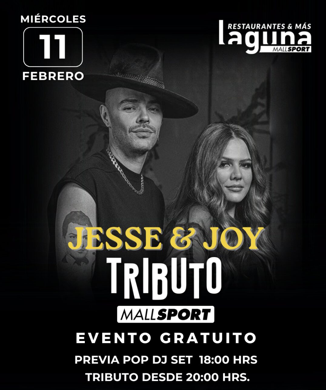 - Un evento gratuito, música en vivo y el ambiente único de la Laguna se unen este miércoles 11 de febrero en Mall Sport, con un tributo a Jesse & Joy que invita a disfrutar las noches de verano al aire libre, junto a buena comida y grandes canciones.